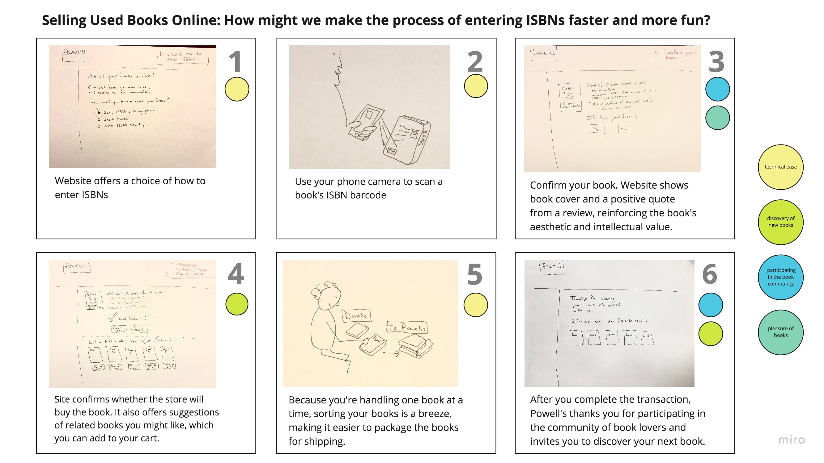 I crafted a journey map based on these three experiences, and decided to focus on improving the process of entering ISBNs, since it is the foundational action of the experience. How might we make the process of entering ISBNs faster and more fun?